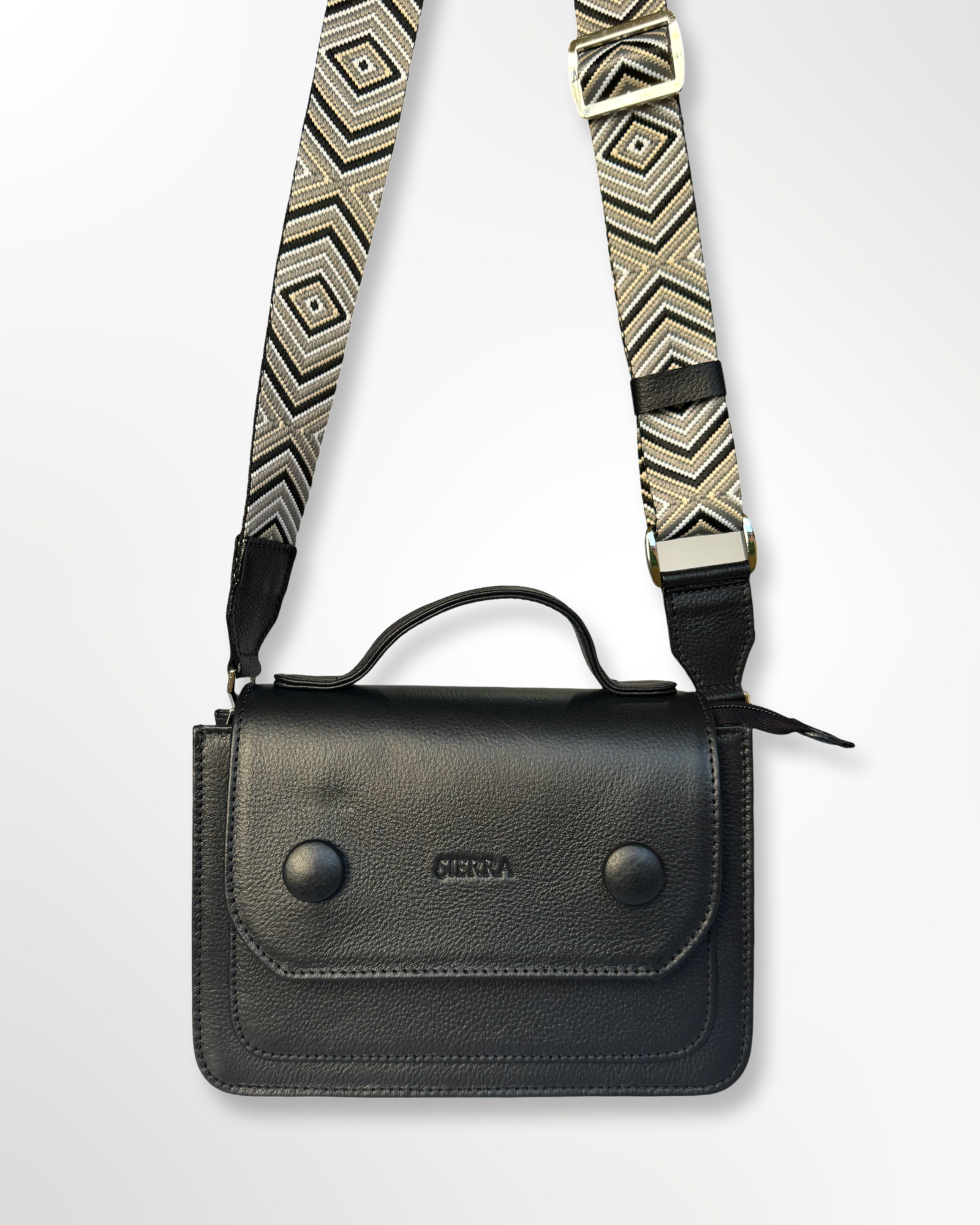 Cartera manos libres en cuero con cargadera tejida Bella negro