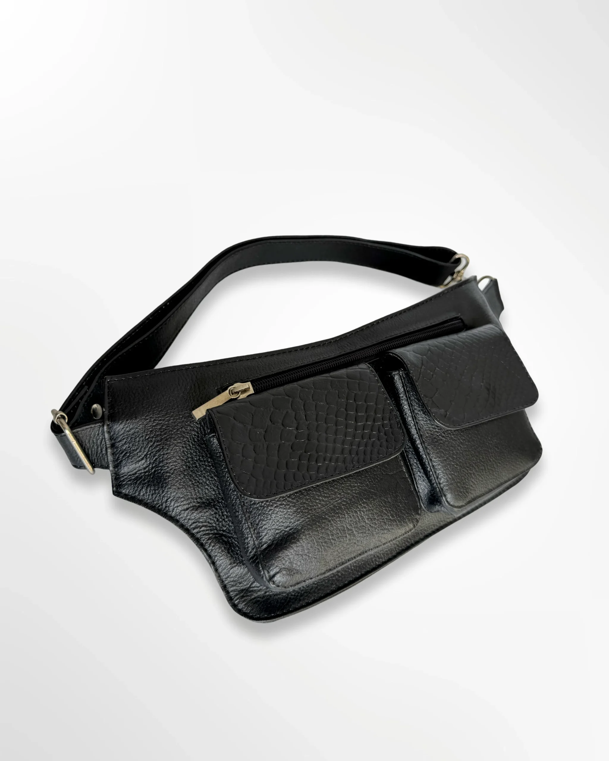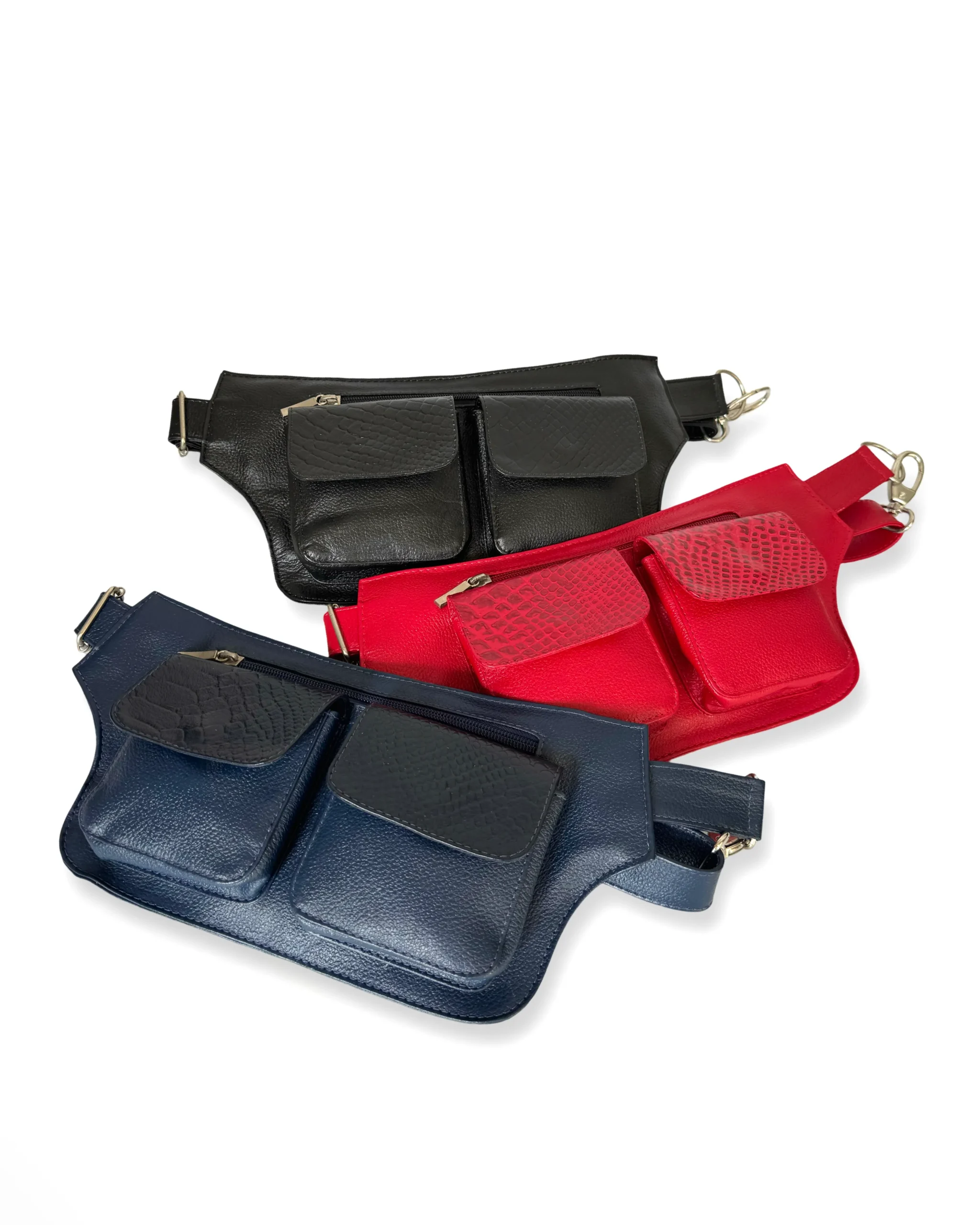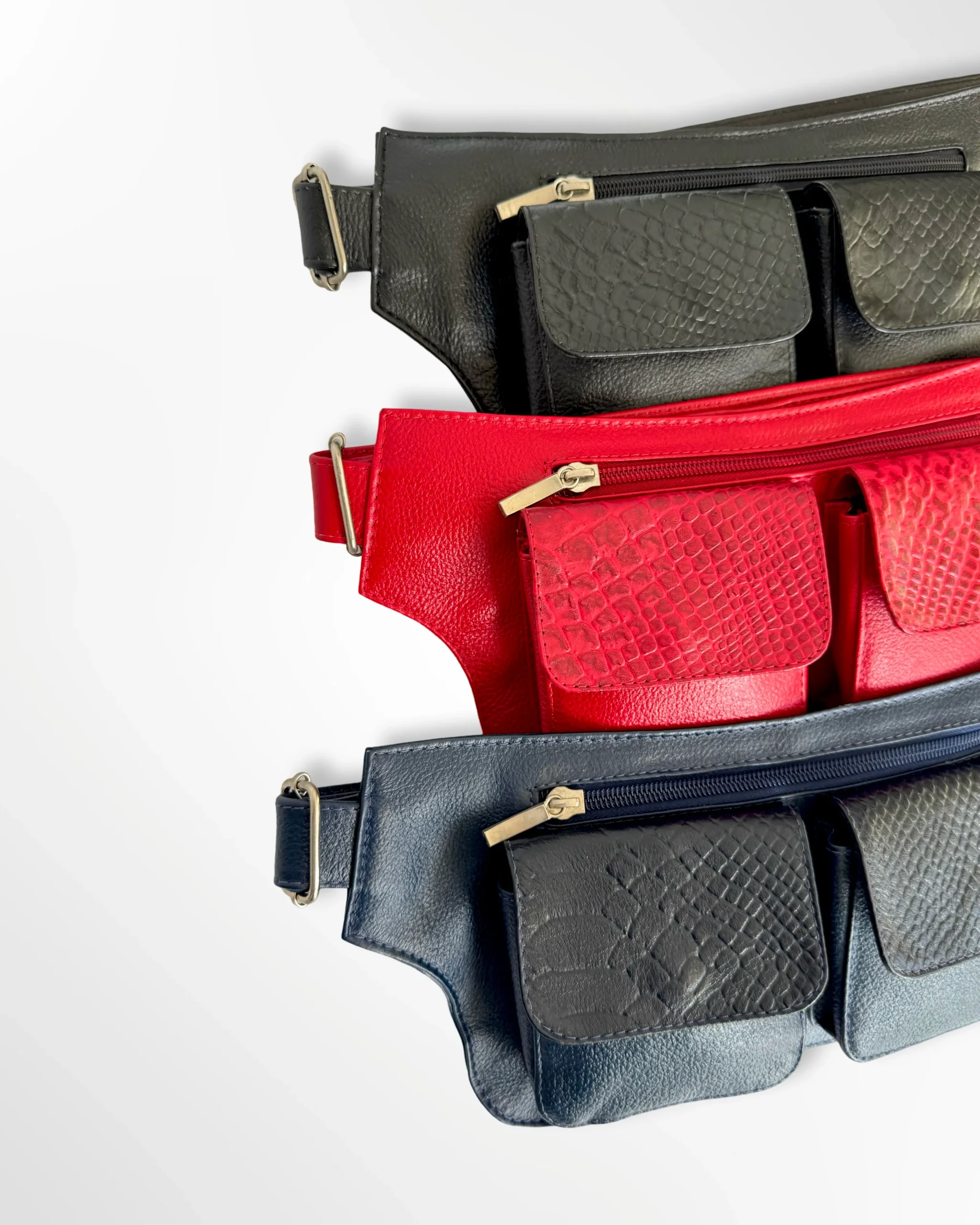 Nuestra riñonera para dama combina diseño y practicidad con su cuero texturizado que da vida a sus singulares colores. Sus dos compartimentos gemelos con broche imantado aportan un toque estilizado, mientras sus dos bolsillos con cremallera, uno delantero y otro posterior de seguridad, te permiten organizar lo esencial de forma cómoda y segura.
