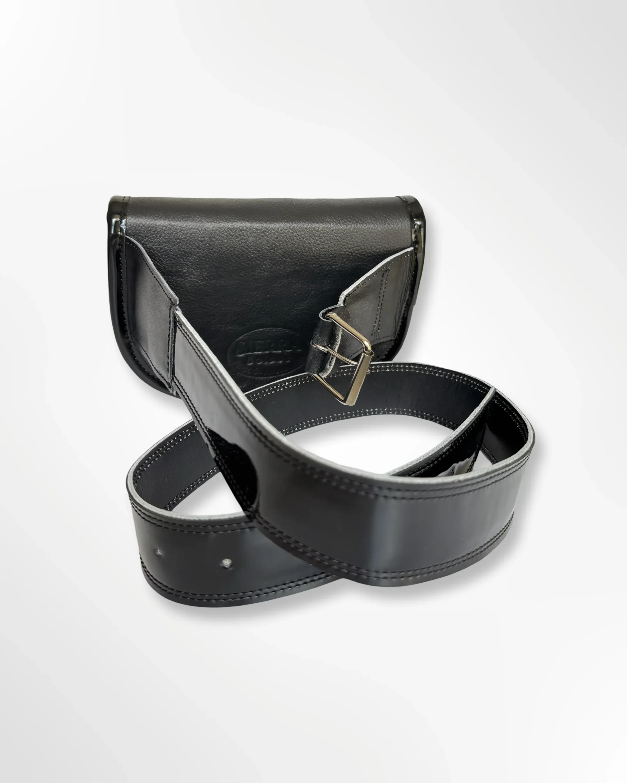 • Pasador en cuero en la parte posterior para ajustarlo al cinturón