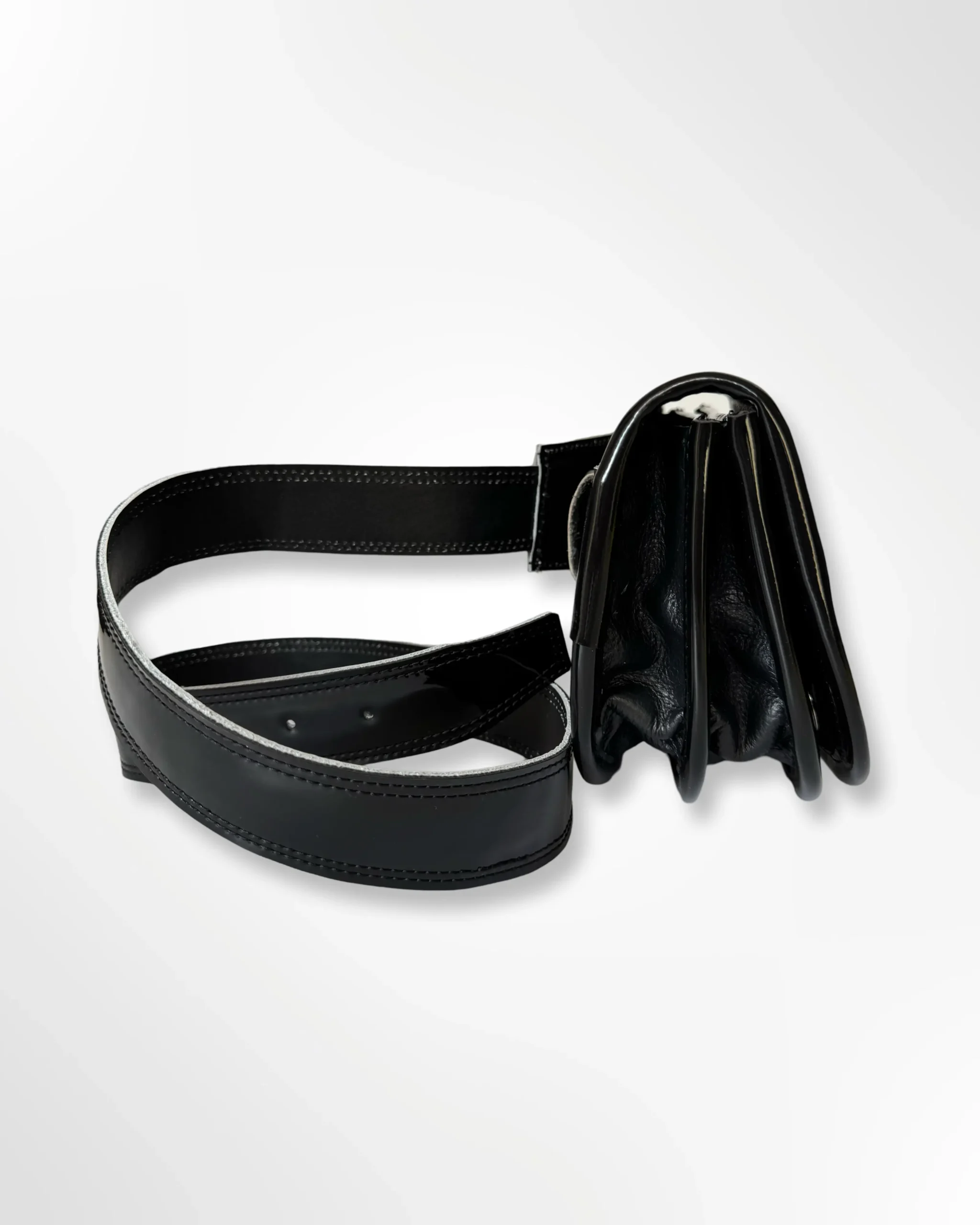 Riñonera tradicional tipo carriel antioqueño todo negro con lengüeta en cuero